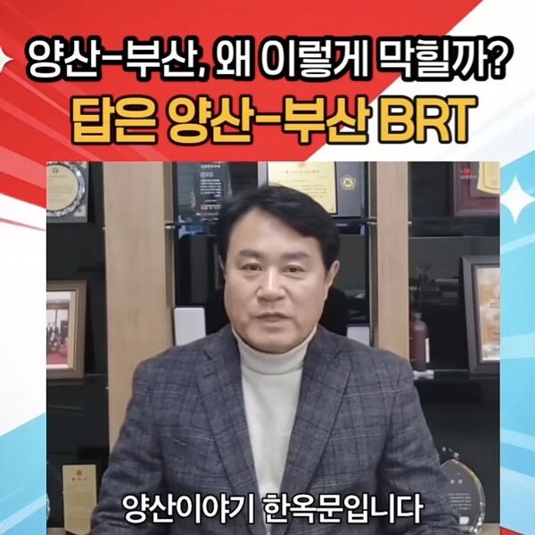 한옥문 전 양산시의회 의장(양산미래혁신연구원 원장)이 13일 자신의 유튜브 채널 ‘양산이야기’를 통해 양산–부산 간 Bus Rapid Transit(BRT) 도입 필요성을 제기했다.